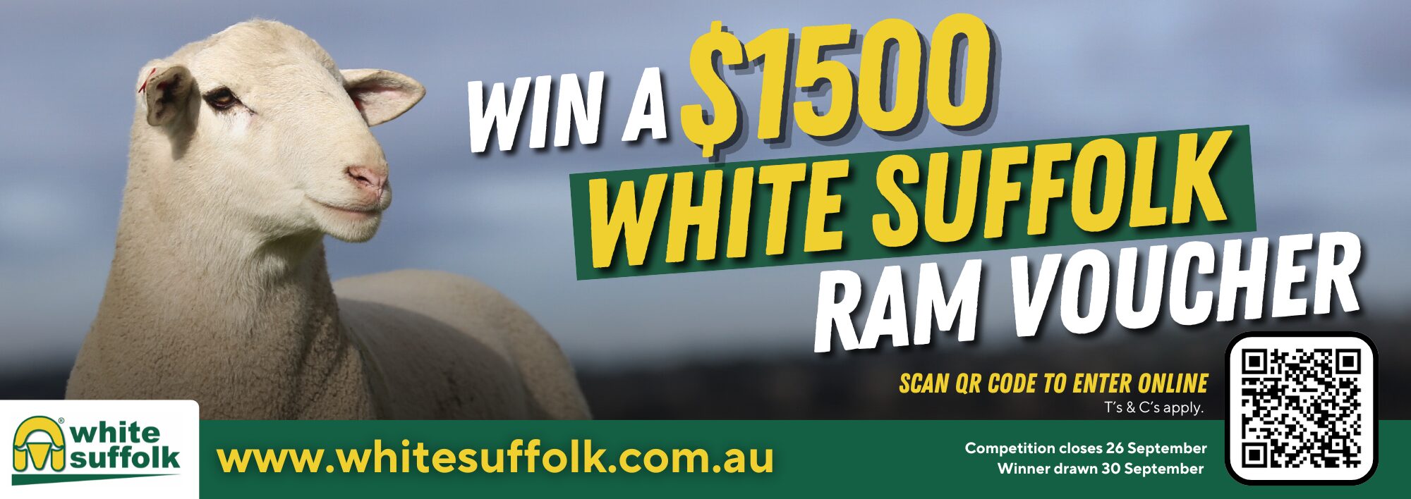 - The voucher is valid for use towards the purchase of any one White Suffolk ram by the winner between 1/7/2025 and 30/6/2026.